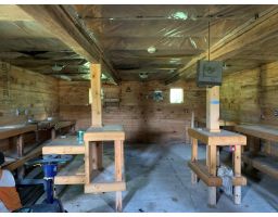 Beyond the home, you’ll find a large wooden hip barn with electricity—a versatile space currently used for storage but ideal as a man’s den, a she-shed, a place for animals, a hobby farm, or even woodworking.