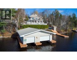 Enjoy a fabulous location on the West Arm Narrows of Lake Nipissing! Finally, a Lake House as distinguished as you! This breathtaking year-round Estate is a testament to pride of ownership and craftsmanship! Built on 2 acres of land with 187ft of beautiful waterfrontage. As you approach the property you notice this is a place of Quiet Luxury, characterized by understated elegance and refined consumption, emphasizing exclusivity and discerning taste! The Best of the Best! This offering will excite the car collector, toy lover or hobbyist! We have a total of 10 Garage Doors on site! When was the last time you said "wow" and meant it? This Estate is comprised of multiple buildings including Our 2850sqft home, a heated two door workshop, A two door storage Garage/Barn, a 3 Car Garage, an attached 2 car Garage and a two-door Boathouse at the waters Edge! Stepping inside, you are welcomed into a turn-key haven of warmth and sophistication. This well-built home boasts signature touches that unlock & conquer style & design! On the main level the open concept living & dining space features high ceilings, expansive windows, a modern kitchen, primary bedroom with full bathroom, walk in closet, laundry room and an office space or second bedroom. The lower level of this home features two large bedrooms, second full bathroom, cozy recreation room with a woodstove-Wett, roughed in plumbing for a bar space or possible in-law suite? Both Bedrooms have its own walk-out to a four-season room with new 6-person hot tub. More? The main deck wraps the entire front of the home with the duradek flooring, glass railings, and awnings that roll out and provide shade! The inground pool with interlocking stone, a gazebo and pool house with bar and half bathroom is a well-loved amenity and a showstopping centerpiece for outdoor entertaining! We are just scratching the surface! Visit my website for full listing description! (id:35617)
