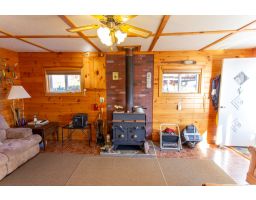 The center wood stove adds cozy warmth for cooler nights or cold winter adventures at the cottage.